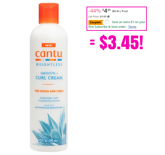 Cantu Weightless Smooth + Curl Cream, 10 fl oz for $3.45 (Reg $7.99)!