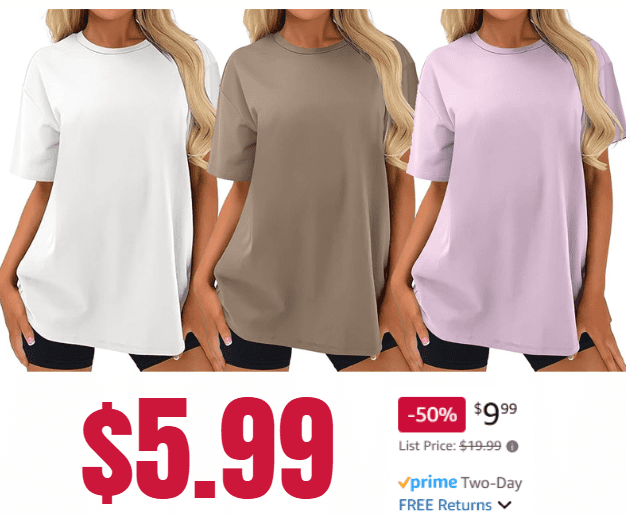 Caracilia Womens Oversized T Shirts for $9.99 (Reg. $19.99)