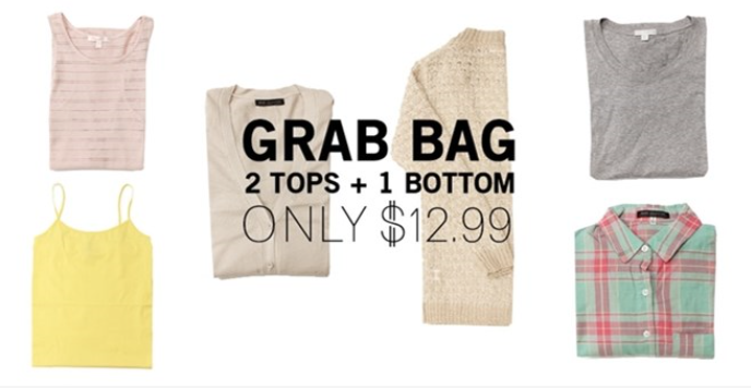 - This season we’re celebrating the spontaneity of summer with our own Caralase Grab Bag event! Let us do the shopping for you and present you with a “mystery box” package that will include 2 tops + 1 bottom for a single payment of $12.99. While all items are randomly selected, we will honor your requested size and will NOT include any 2 of the same styles.