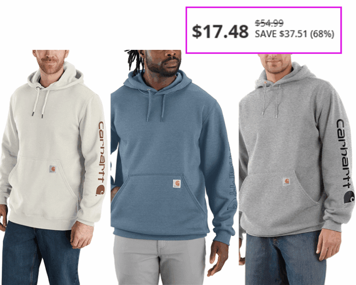 Carhartt Men’s Midweight Signature Sleeve Logo Hooded Sweatshirt for $17.48 (Reg $54.99)!