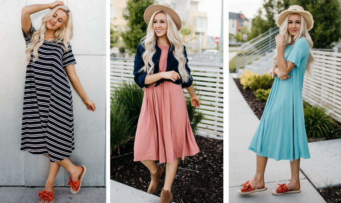 You’ll want to live in these cute dresses all summer long! You will love the extra-wide sleeves and below the knee length. These are selling fast!