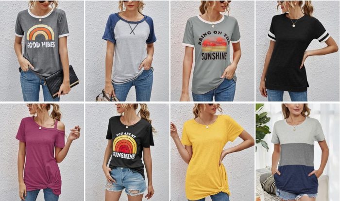 Find a few comfy tees for summer! There are a variety of styles and colors available.