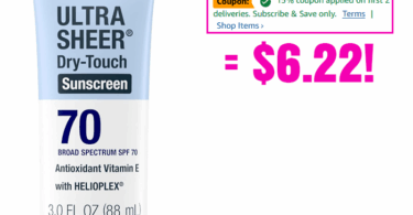 Neutrogena Ultra Sheer Dry-Touch Water Resistant and Non-Greasy Sunscreen Lotion with Broad Spectrum SPF 70, 3 Fl Oz for $6.22 (Reg $13.32)!6 days agoby Jill