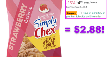Simply Chex, Strawberry Creme Snack Mix, Family Size, 13.5 oz Bag for $2.88 (Reg $4.80)!8 months agoby Jill