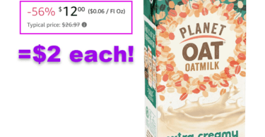 Planet Oat Oatmilk, Extra Creamy, 32 Fl. Oz (Pack of 6) for $11.40 – $12 (Reg $26.97)!11 months agoby Jill
