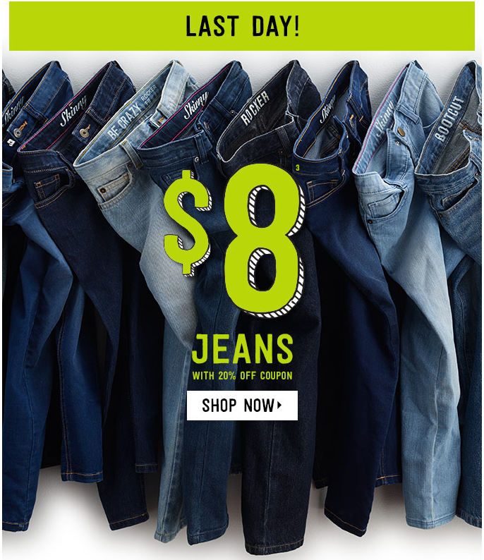Crazy 8 Jeans Just $8.88! Plus Get 40% Off Regular Price Items, Up to 70% Off Markdowns!10 years agoby Jill