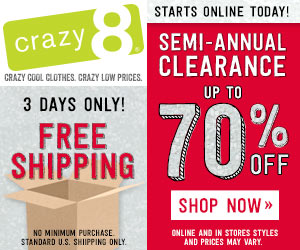 *HOT* Crazy 8 Semi-Annual Clearance Sale! Up to 70% Off & Free Shipping! Possible 20% Off Code!11 years agoby Jill