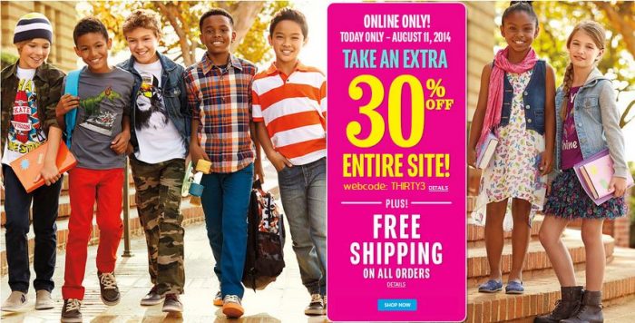 The Children’s Place: Extra 40% Off Clearance & Free Shipping on School Uniforms! $6 Jeans & More!11 years agoby Jill