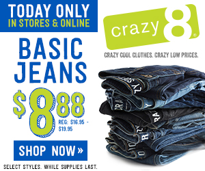 TODAY ONLY Crazy 8 FREE Shipping! Plus Buy 1 Get 1 for $0.08! Includes Jeans, Tees & Polos!11 years agoby Jill