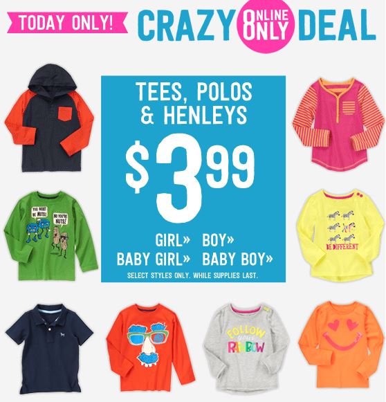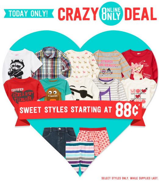 *LAST DAY* The Children’s Place: Up to 80% Off + Free Shipping! Items start at $0.59!12 years agoby Jill