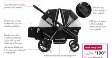 Jeep Wrangler Deluxe 4 Seater Stroller Wagon by Delta Children for $439.99 (Reg $599.99)!6 months agoby Jill