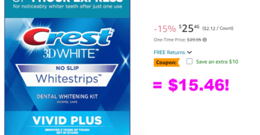 Crest 3DWhitestrips Vivid Plus 10 Treatments + 1 Hour Express 2 Treatments Teeth Whitening Kit for $15.46 (Reg $29.95)!1 year agoby Jill
