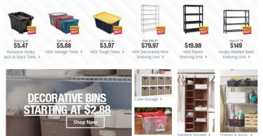 30% off Storage from Home Depot! Decorative Totes start at $2.88! 20 gal. Totes $5.88 Shelving starts at just $19.98!!8 years agoby Becky