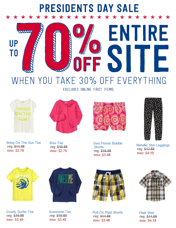 The Children’s Place President’s Day Sale: Up to 80% Off & FREE Shipping! ALL Basic Denim 50% Off! *Extended Today*10 years agoby Jill