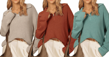 Arach&Cloz Wool Blend Lapel Quarter Zip Oversized Fit Sweater for $19.79 – $22.19 (Reg $32.99 – $36.99)!1 month agoby Jill