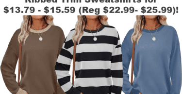 Saloogoe Crewneck Color Blocked Ribbed Trim Sweatshirts for $13.79 – $15.59 (Reg $22.99- $25.99)!1 year agoby Jill