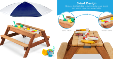 3-in-1 Kids Sand & Water Table Outdoor Wood Picnic Table w/ Umbrella for $109.99 – $119.99 + Free Shipping (Reg $179.99)!2 years agoby Jill