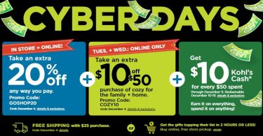 Kohl’s Cyber Days Sale Continues! 20% Off Code + $10 off $50 Cozy Items! Don’t Forget To Use Your Kohl’s Cash!6 years agoby Jill