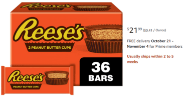 REESE’S PIECES Peanut Butter in a Crunchy Shell, Candy Boxes, 4 oz (12 Count) for $8.06 (Reg $14.88)!3 months agoby Jill