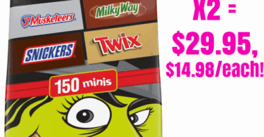 SNICKERS, TWIX, MILKY WAY & 3 MUSKETEERS Minis Halloween Candy Variety Pack, 150 Ct for $14.98 (Reg $24.99)!2 months agoby Jill