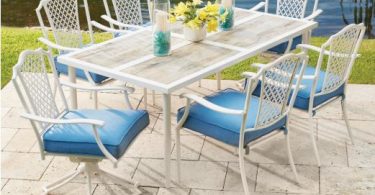 Hampton Bay Alveranda 7-Piece Metal Outdoor Dining Set with Periwinkle Cushions $419.40 (reg $699) 7 years agoby Becky