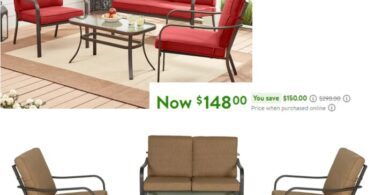 Mainstays Stanton Cushioned 4-Piece Patio Furniture Conversation Set for $239.97 (Reg. $269) + Free Shipping!2 years agoby Becky