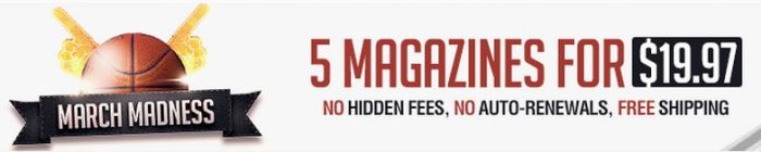 March Madness Sale at DiscountMags.com! Select 5 Magazines for $19.97!