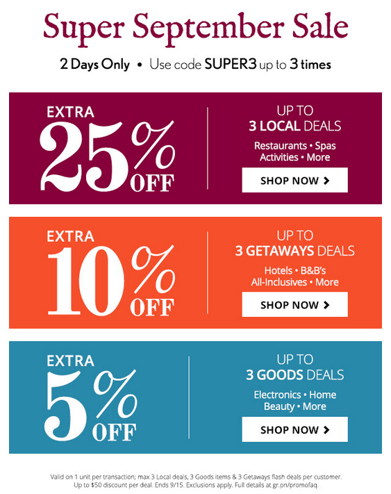 Groupon: Up 25% Off 3 Deals! Lots of Local Travel Deals, Restaurants, Activities, More! Includes Connect 365 Pass!10 years agoby Jill