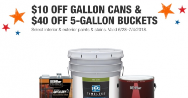 $10 off Gallon Cans & $40 off 5-Gallon Buckets of Interior & Exterior Paints & Stains!7 years agoby Jill