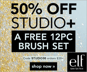 e.l.f. Cosmetics: 50% Off Studio Makeup PLUS FREE 12 Piece Brush Set on $30 Orders! Plus $15 Rebate!12 years agoby Jill