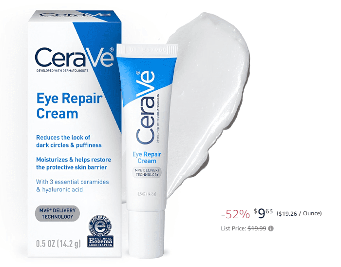 CeraVe Eye Repair Cream, Hyaluronic Acid + Niacinamide + Marine Botanical Complex for $9.63 or $10.17 (Reg $19.99)!