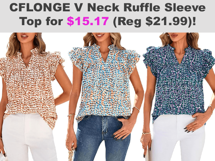 CFLONGE V Neck Ruffle Sleeve Top for $21.99