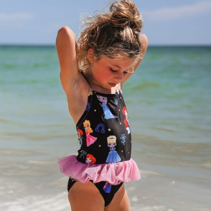 Designed to keep her theme park dreams alive, these fun & tutu-tally adorable swimsuits feature all her favorite characters & princesses, adorned with a coordinating tulle ruffle!