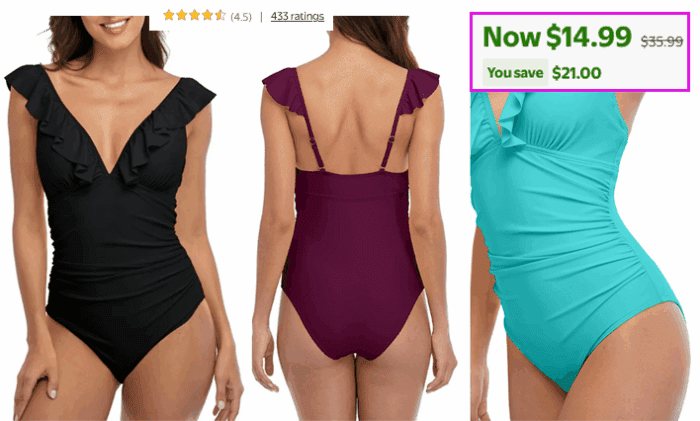Charmo Women’s One-Piece Ruffle Swimsuit for $14.99 (Reg $35.99)!