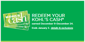 Plus, don’t forget to redeem any Kohl’s Cash you’ve earned before January 3! Kohl’s Cash will come off before any other codes.