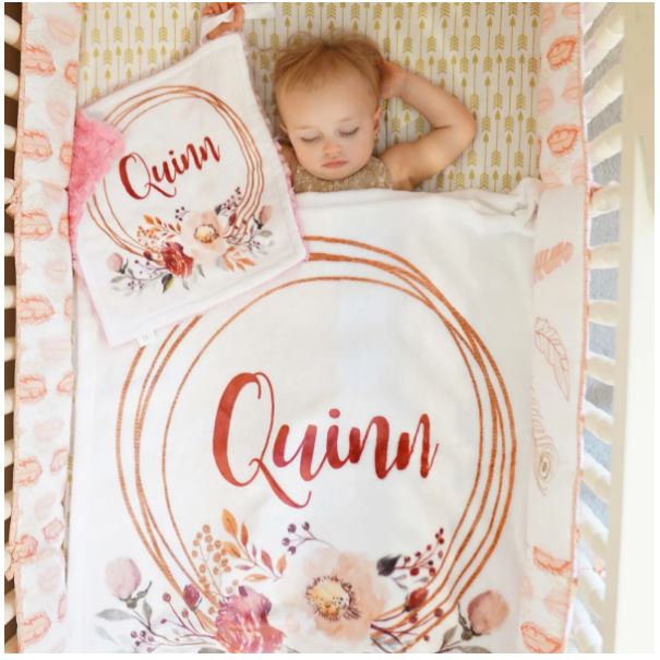 These minky blankies are so cute, and they can be personalized! Choose from a variety of wreath and antler options.