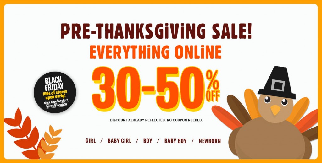 If you’re in need of kids clothes or give your kids a new outfit or jammies for Christmas, head over to The Children’s Place. They’re having their Pre-Thanksgiving Event and the entire site is 30-50% Off! Plus you can get FREE shipping on orders of $50 and up! This offer valid today only, but I’m sure they’ll have something going on all week.