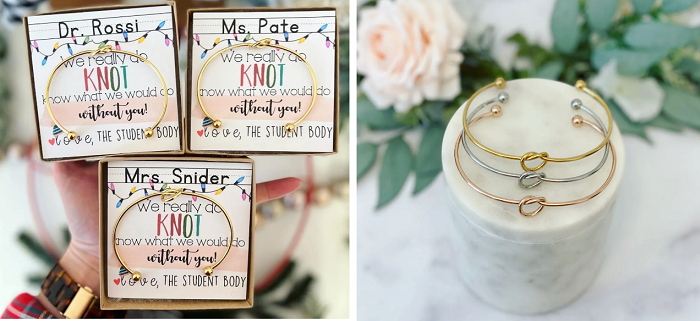 These pretty knot bracelets come all personalized, packaged, and ready to gift!