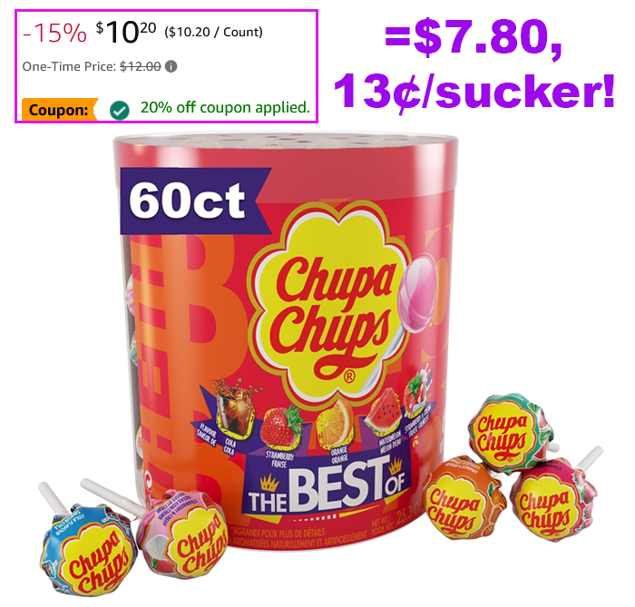 Chupa Chups Lollipop Variety Assortment, 5 Flavors (60 Suckers) for $12