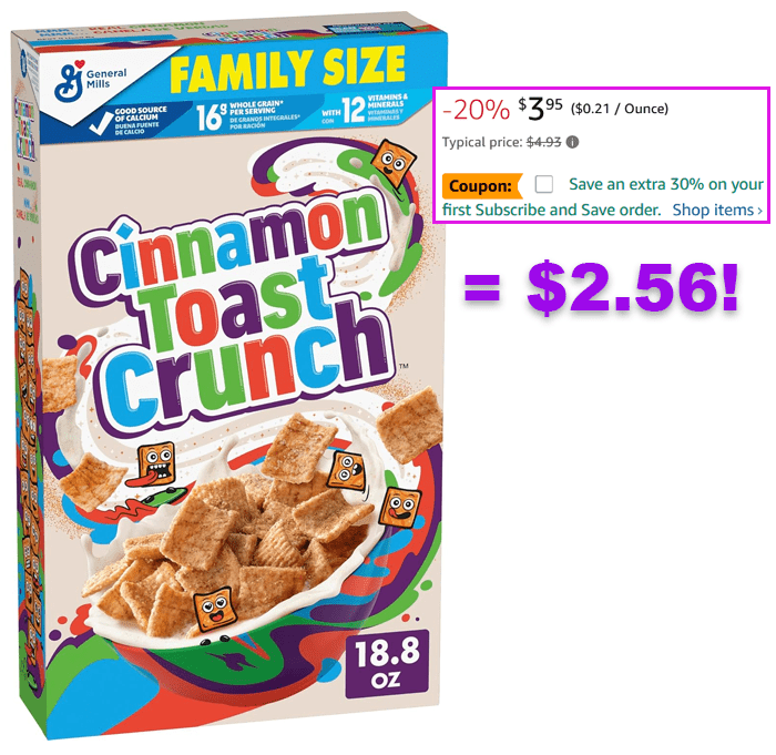 Cinnamon Toast Crunch Breakfast Cereal, 12 oz for $1.88 (Reg $2.97)