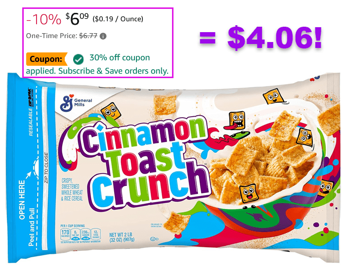 Cinnamon Toast Crunch Breakfast Cereal, Value Bag, 32 oz for $6.77