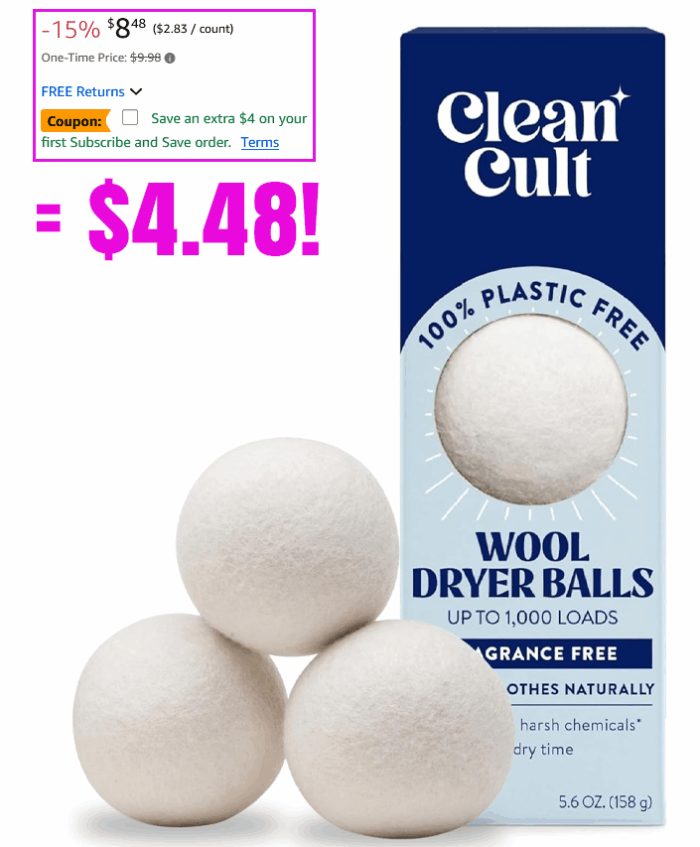 Cleancult Wool Dryer Balls (3 Count) for $9.98