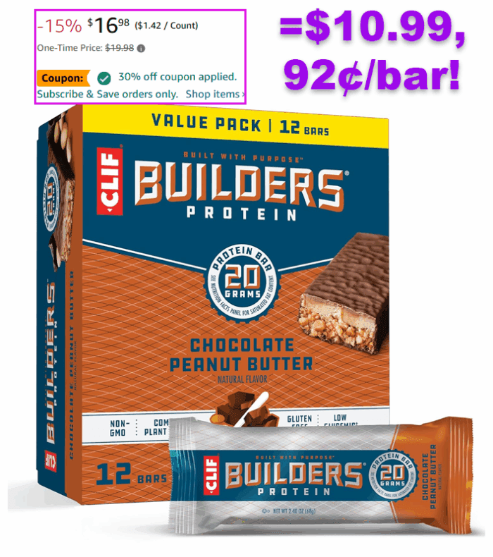 CLIF BUILDERS Protein Bars for $10.99 (Reg $19.98)!