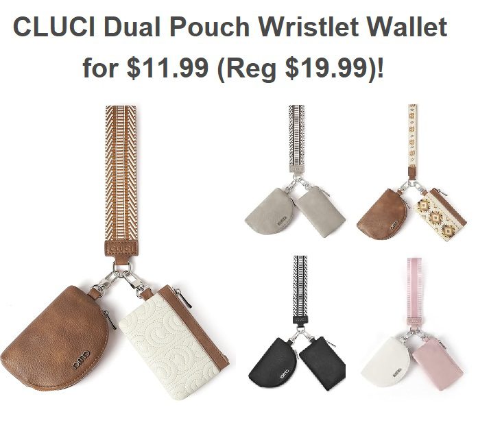 CLUCI Dual Pouch Wristlet Wallet for $15.99