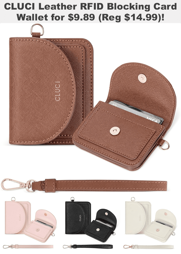 CLUCI Leather RFID Blocking Card Wallet with Wrist Strap for $14.99