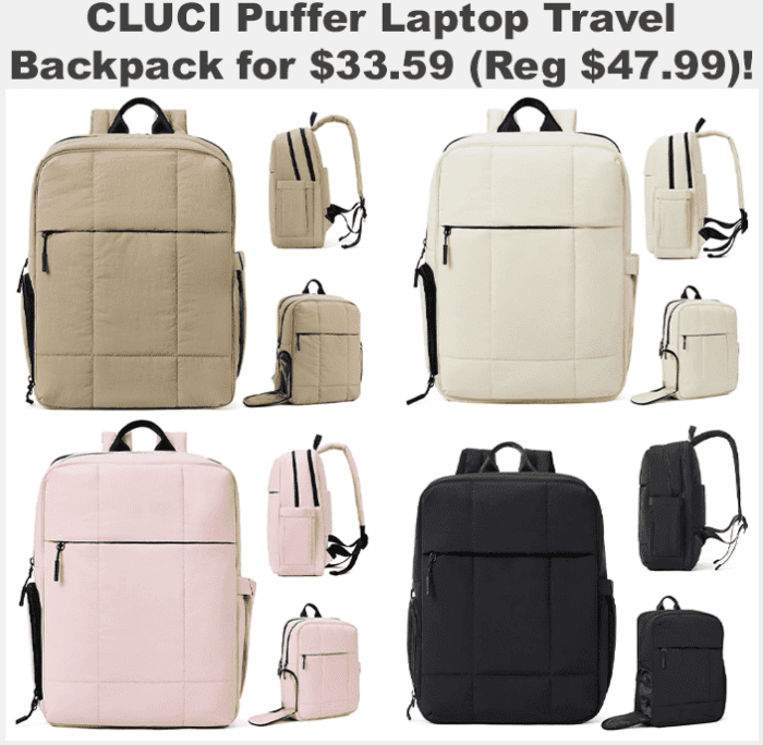 CLUCI Puffer 17.3″ Laptop Backpack for $45.59 (reg $47.99) *Only works on the styles pictured that are marked $45.59*
