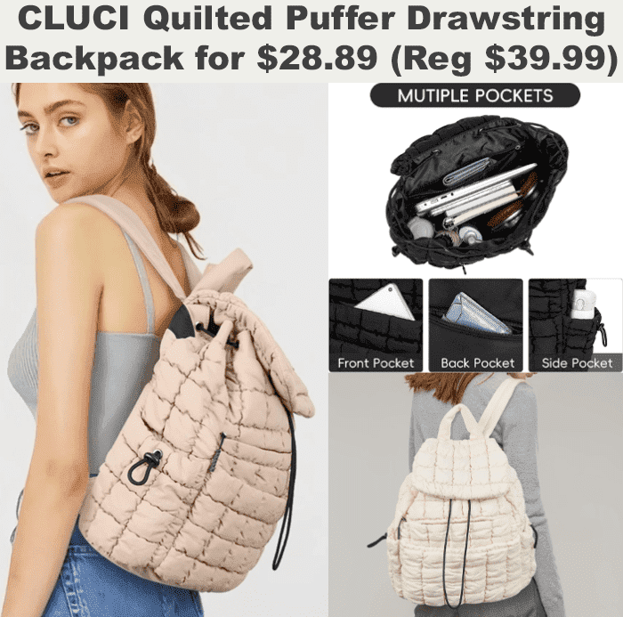 CLUCI Quilted Puffer Drawstring Backpack for $33.99 (reg $39.99)