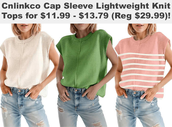 Cnlinkco Cap Sleeve Lightweight Knit Tops for $19.99 – $22.99 (Reg $29.99)
