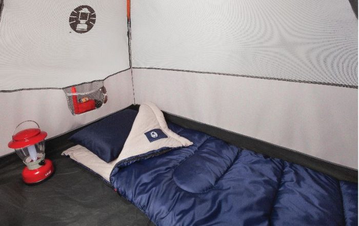 - Camping sleeping bag is equipped with 4-lb Coletherm insulation