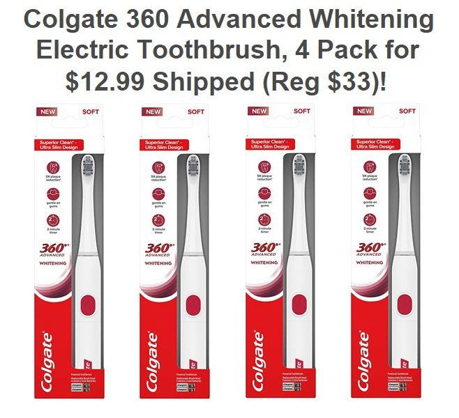 Colgate 360 Advanced Whitening Electric Toothbrush, 4 Pack for $17.99 (Reg $33)!